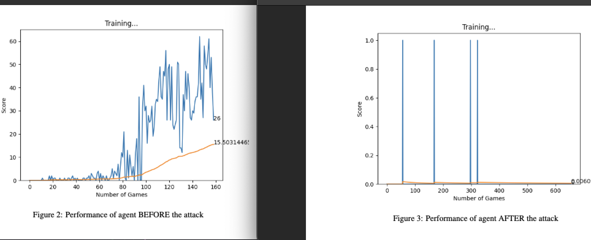 Implemented an adversarial attack on the reward model of a reinforcement learning-based snake game. The attack manipulates the reward signals to mislead the learning agent.