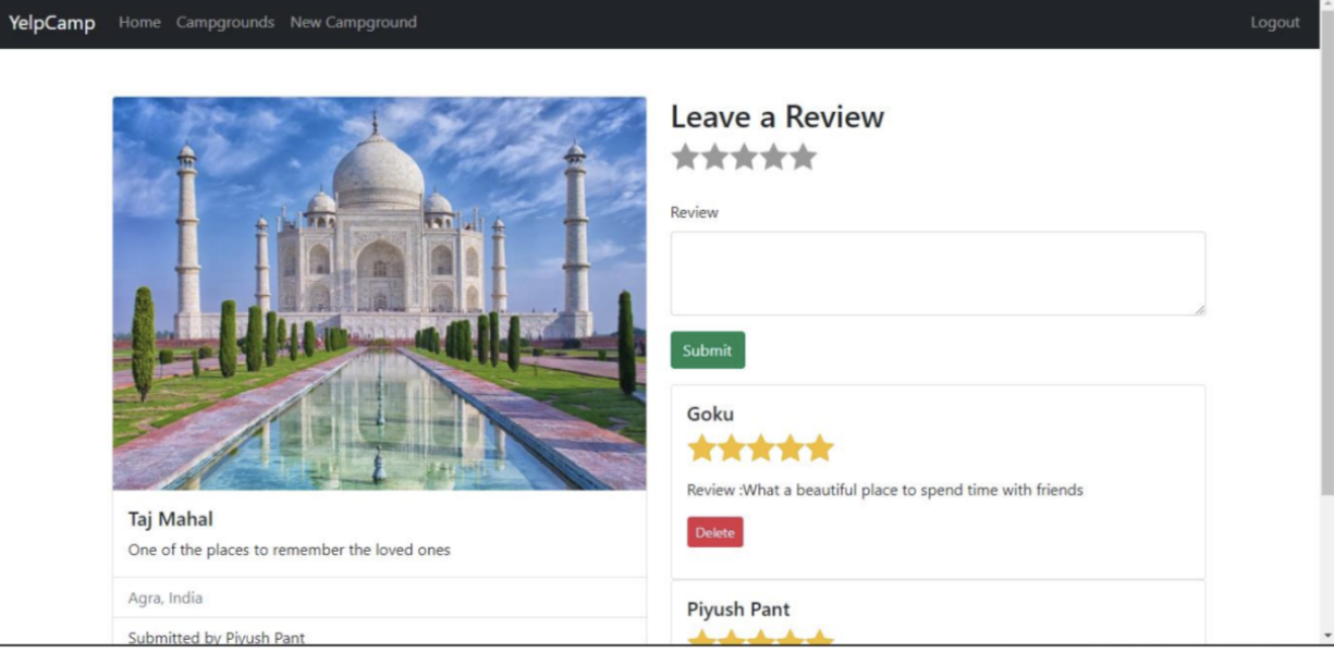 Webapp to find and review campgrounds. Users can create, update and delete their campgrounds and reviews. Features